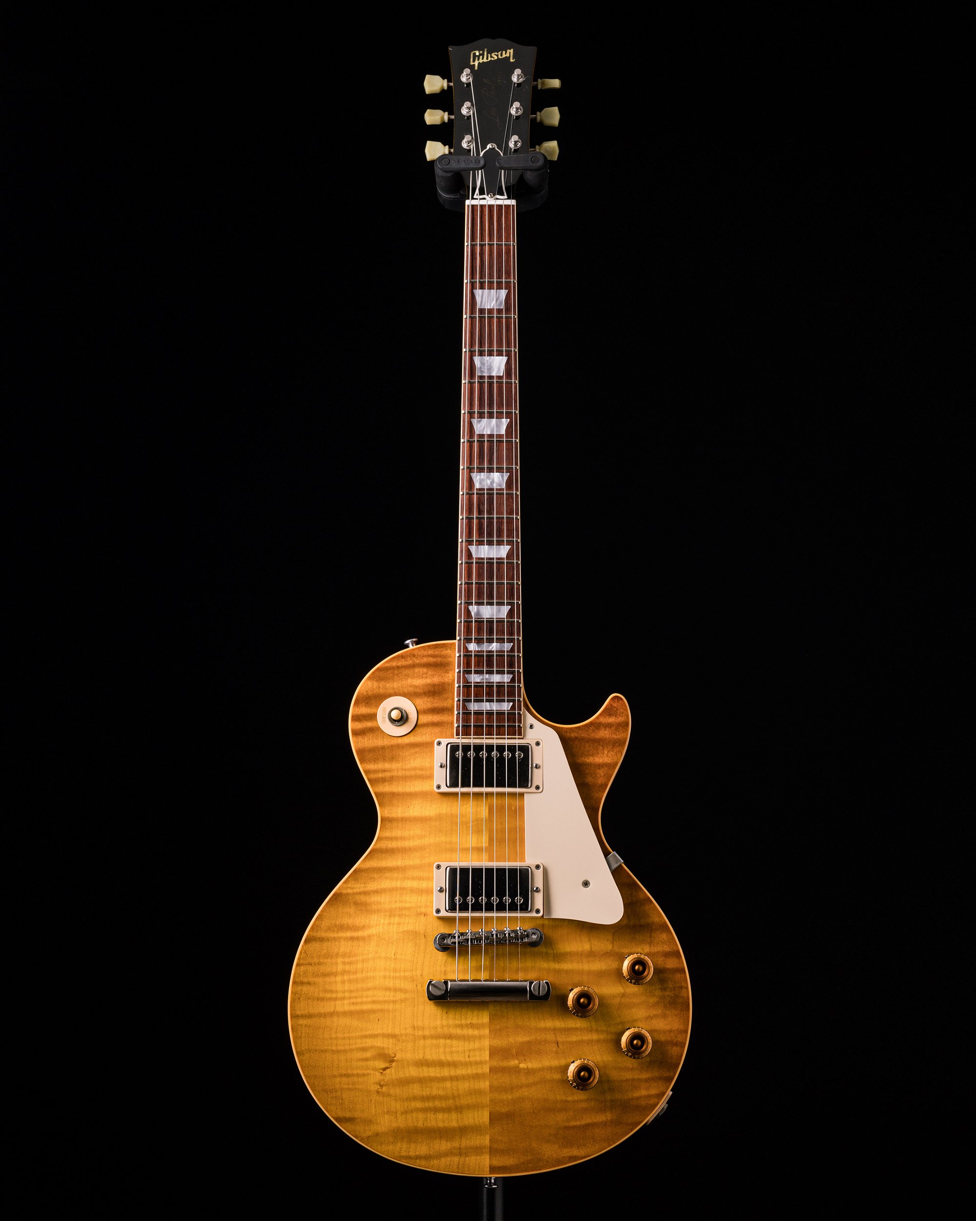 O tampo em Flamed Maple acentua a beleza desse instrumento - geralmente as reedições de 58 têm Plain Top, mas em alguns anos a Gibson faz algumas unidades do modelo com Flame Top. Esse é um belo exemplar do ano de 2001.
