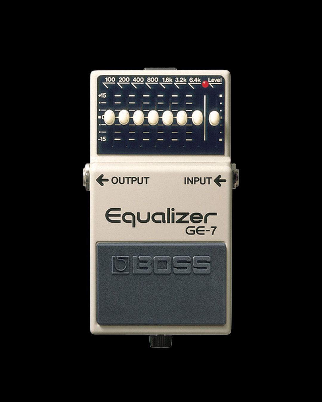 O circuito de equalização gráfica do GE-7 é intuitivo e permite ajustes rápidos e precisos, seja para eliminar graves excessivos, adicionar corpo nas baixas frequências, destacar médios para melhor definição na mixagem ou realçar os agudos com brilho. As seis primeiras bandas (100 Hz a 3,2 kHz) utilizam filtros peaking, que permitem controle preciso em frequências específicas, enquanto o controle de 6,4 kHz emprega um filtro shelving para ajustes suaves na região aguda.
