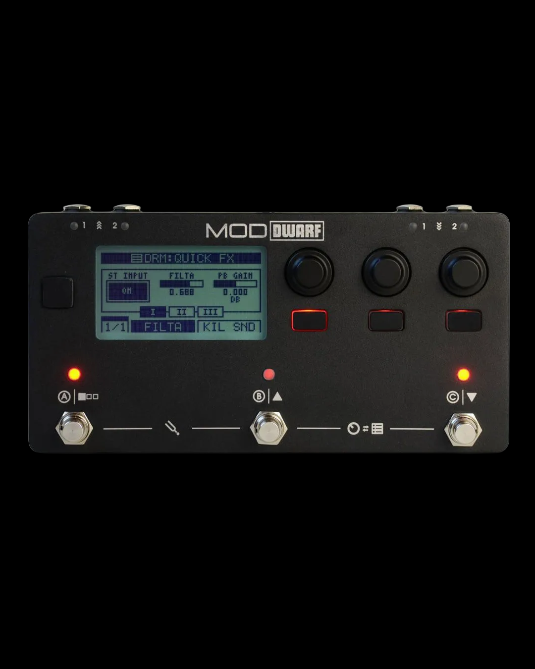 O Dwarf também marcou um avanço em conectividade: entradas configuráveis, MIDI completo, USB Host e Device, control chain para acessórios MOD e um roteamento interno totalmente livre que supera o de multi-efeitos tradicionais.
